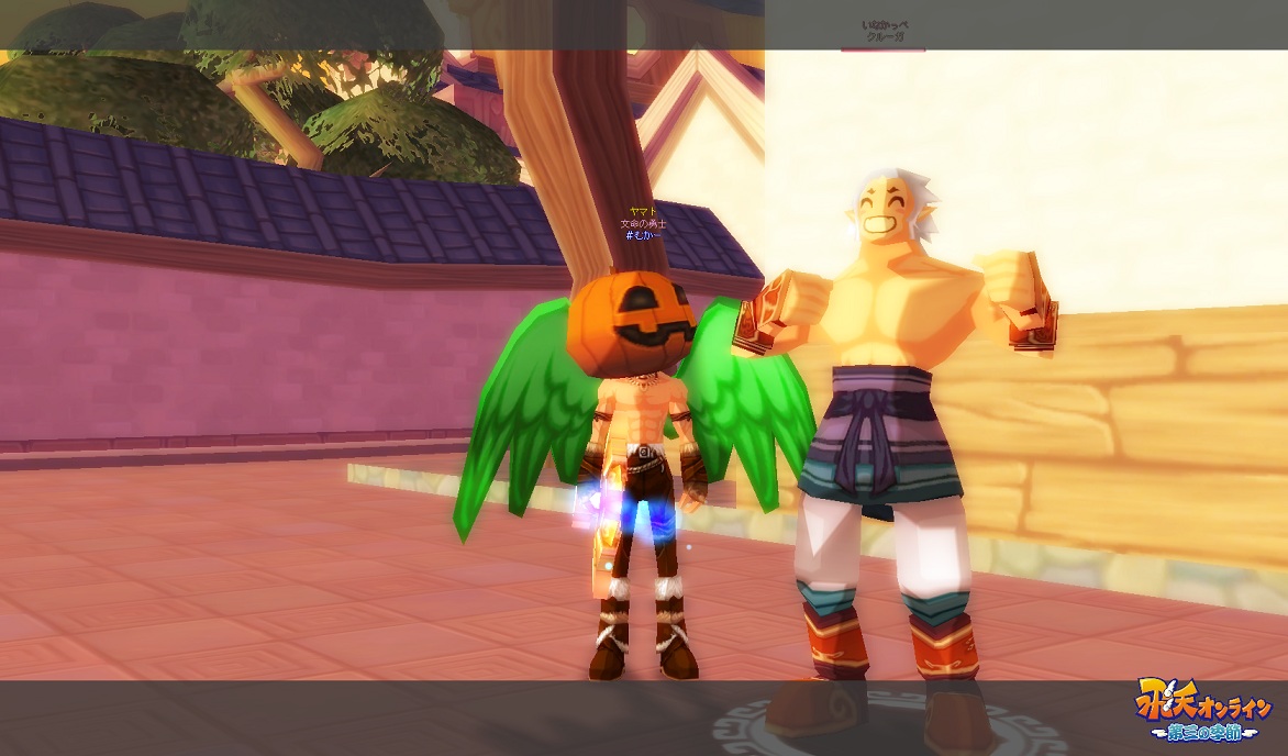 仮装を色々組み合わせる時は、色やデザインの統一感があると全体的にかっこいいよね、とかいう話をしていたんですが、その時の流れで貸してくれた羽が見事にマッチしてお気に入りになっちゃいました・q・