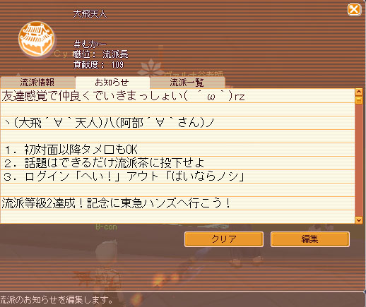 ・・・そして宴も終了後、流派お知らせには謎のメッセージが密かに追加されていた・・・。